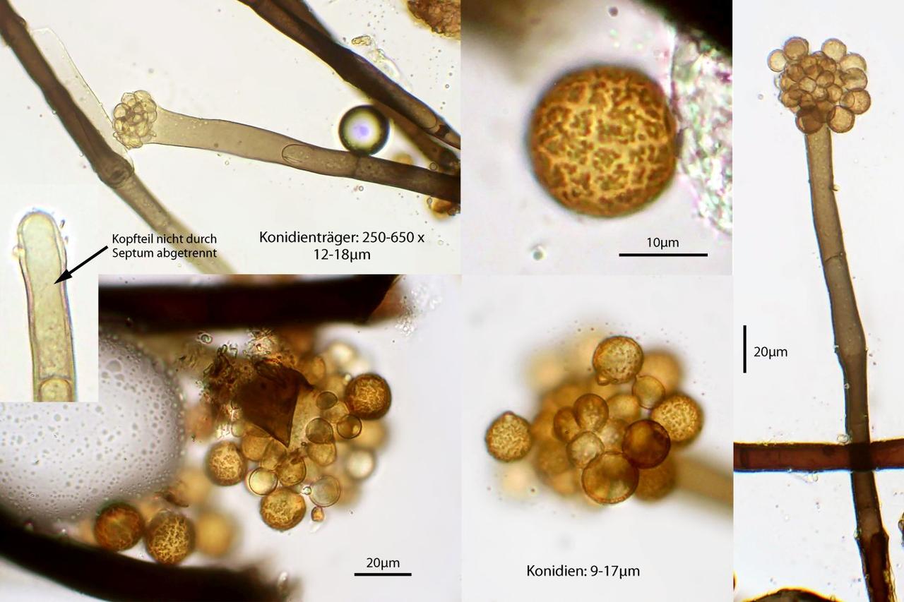 Makroskopisch nur als grauer Fleck an alten Krautstängeln zu sehen, zeigt dieser Hyphomycet, wie es sich gehört, seine wahre Schönheit erst bei Einsatz eines Mikroskopes: