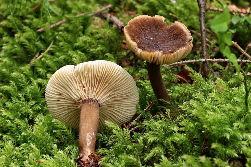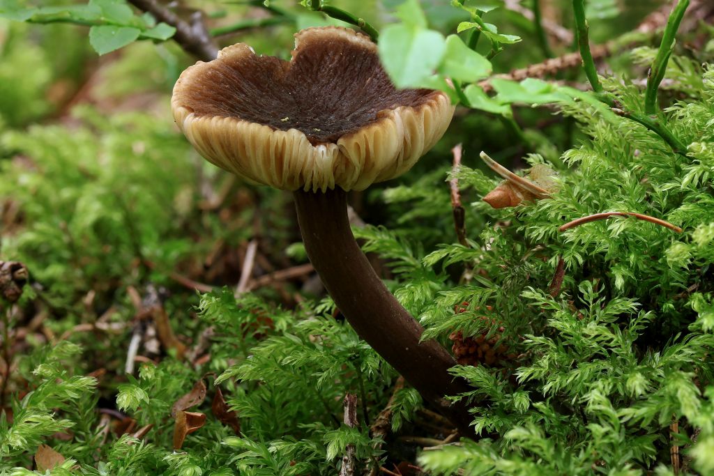 Etwas weiter unten begannen erste Sumpflöcher aufzutauchen, die üppig mit Sphagnum bewachsen waren. Jetzt konnte man auch den ersten Bachlauf und kleinere Zuflüsse sehen, die Ufer sattgrün mit Moosen überzogen. Da musste es jetzt richtig Pilze geben. War auch so: