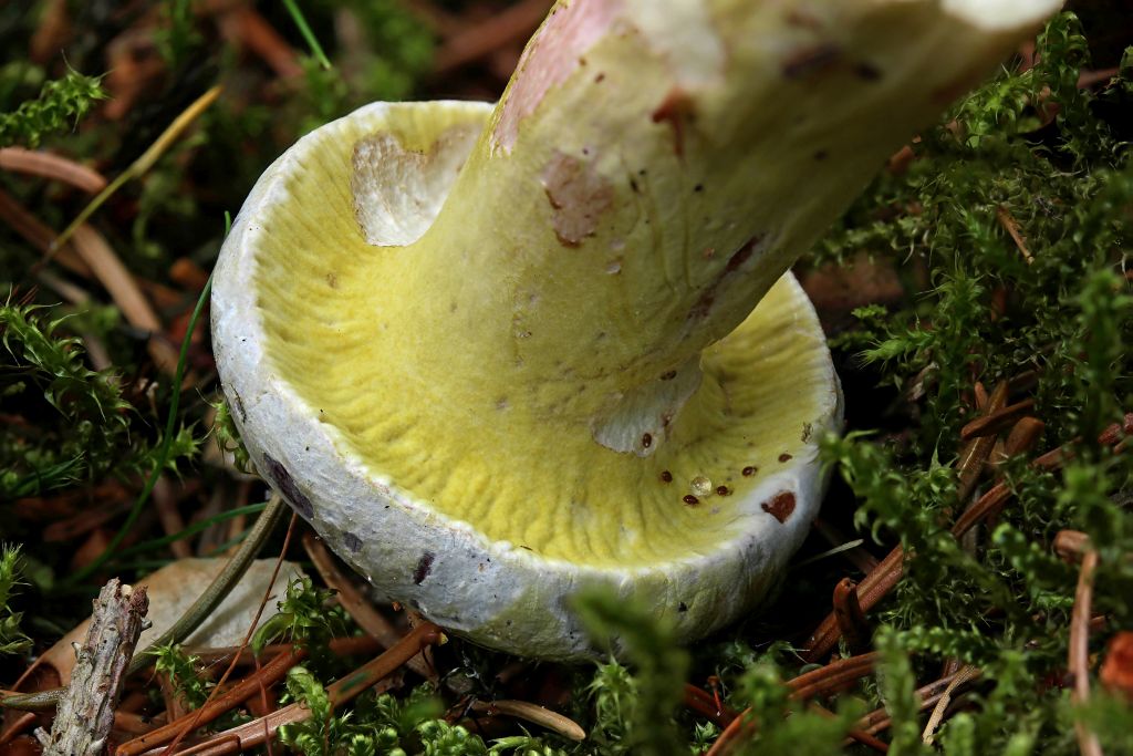 Durch die Hanglage ist der Bereich gut vor Austrocknung geschützt und entsprechend zeigten sich auch größere Pilze, wie einige Täublinge und Wulstlinge. An einem Täubling war ein Schimmel zu finden. Leider war davon keine reife Hauptfruchtform zu finden: