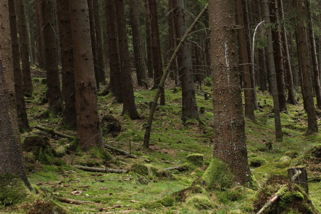Es ging weiter tiefer in den Wald, hier wachsen fast nur noch Fichten.