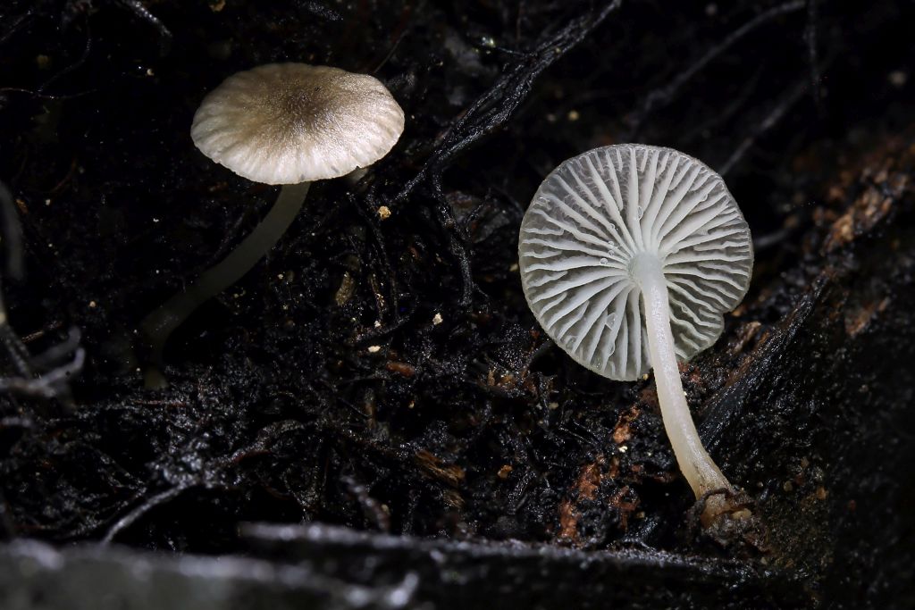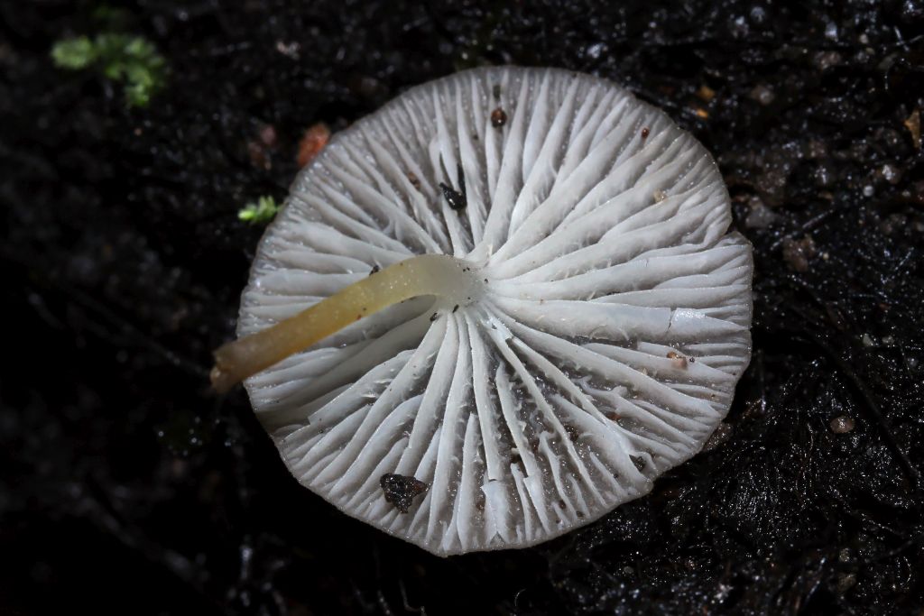 Hutdurchmesser 0,5-2,5cm, durchscheinend gerieft. Stielbasis bildet eine kleine Scheibe. Lamellen zahlreich, etwas herablaufend und mit deutlichen Anastomosen.