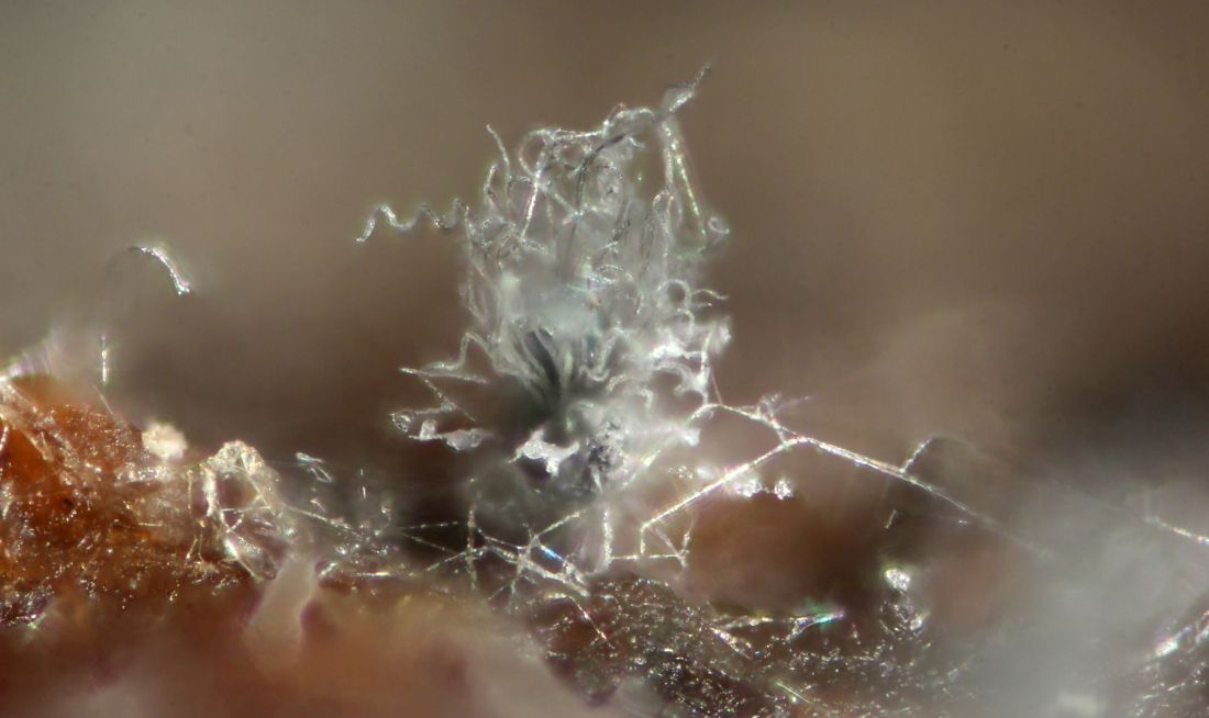 Bei der Untersuchung des Exsikkats hab ich, außer zur Demonstration, was bei KOH passiert, nur in Wasser gearbeitet, sonst ist es oft einfacher in verdünnter KOH, weil die Zellen besser und schneller aufquellen als in Wasser.
