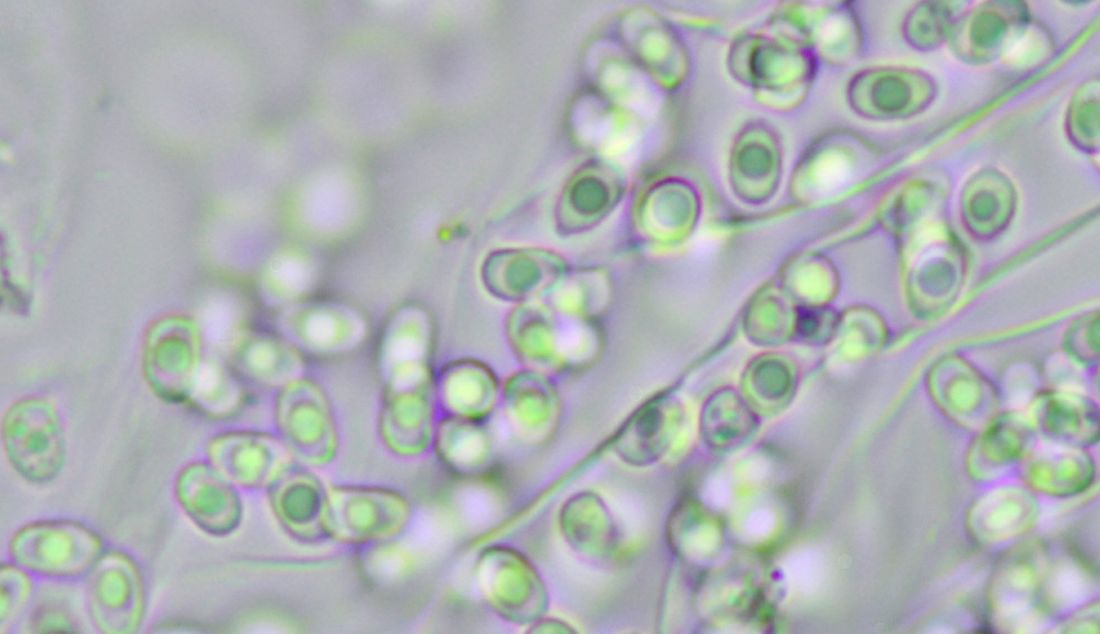 Lactocollybia hat aber in allen Fruchtkörperteilen Zellen, die mit einer gelartigen, gelblichen, stark lichtbrechenden Masse gefüllt sind. Das ist das wesentliche Merkmal der Gattung. Dieser Inhalt löst sich in KOH zu einer wässrig-gelblichen Flüssigkeit auf und man sieht die Strukturen kaum noch.