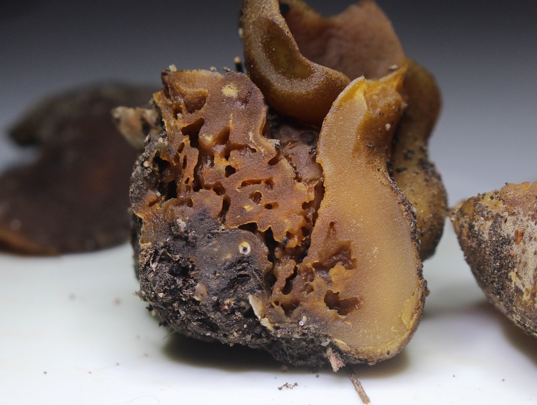Die Kollektion besteht aus ziemlich geschlossenen Fruchtkörper mit bis zu 6 cm Durchmesser (geöffnet, sofern sich diese Art später überhaupt öffnen sollte, entsprechend mehr).