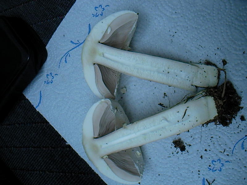 Trotz schlechter Bilder, hat jemand eine Ahnung und kann etwas mit den Angaben anfangen? Außerdem fand ich noch einen Champignon mit stark violetten Lamellen mit einem Durchmesser von etwa 15 cm. Ich halte beide für die gleiche Art. Auch er roch nach Anis.