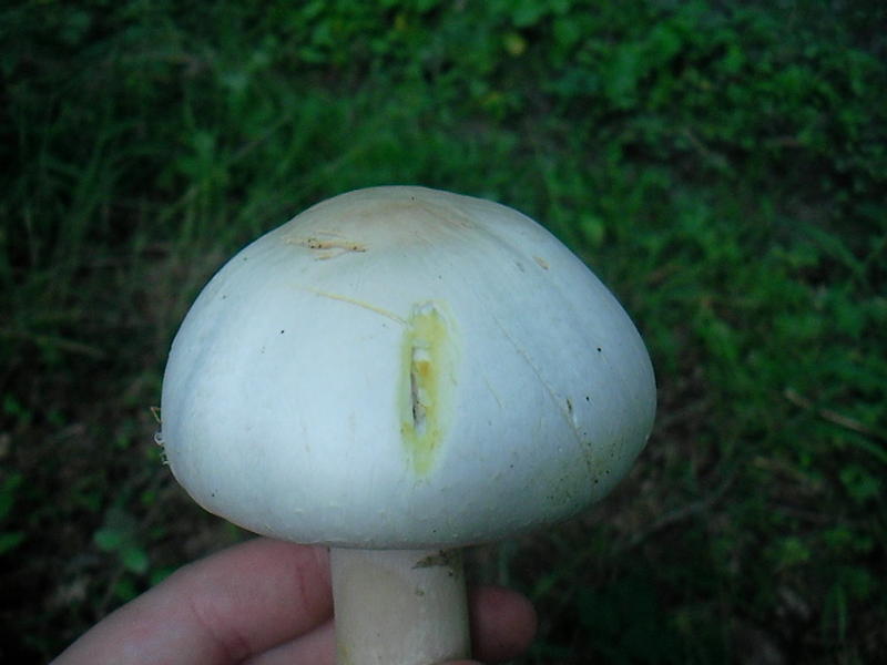 Verfärben sich Champignons gelb (vor allem an der Stielbasis) ohne dass ein Anisgeruch wahrnehmbar ist: Nicht essbar - giftverdächtig!