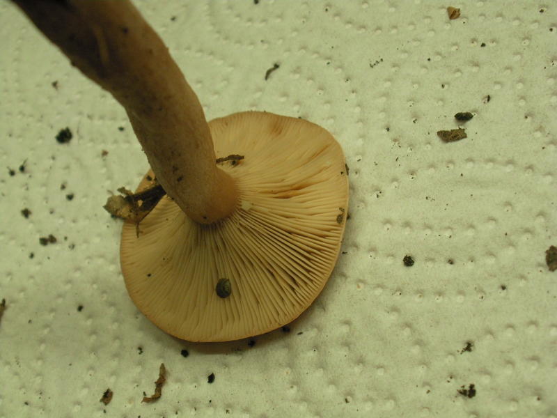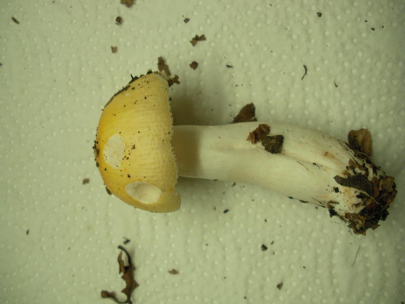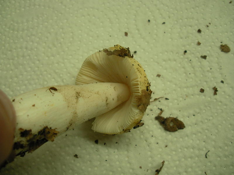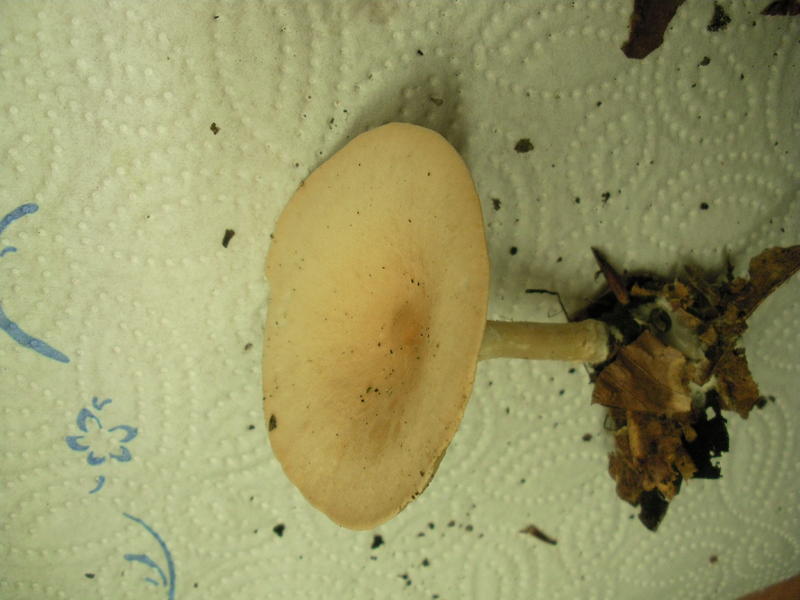 - Hut: hellgelber Hut, ähnlich einem jungen Pfirsichtäubling, kleine radiale Furchung ( falls das der richtige Begriff ist