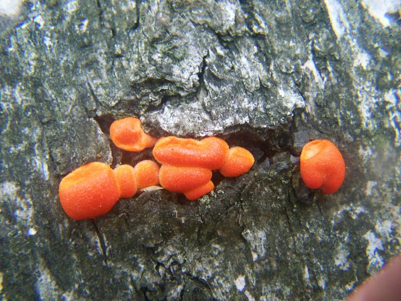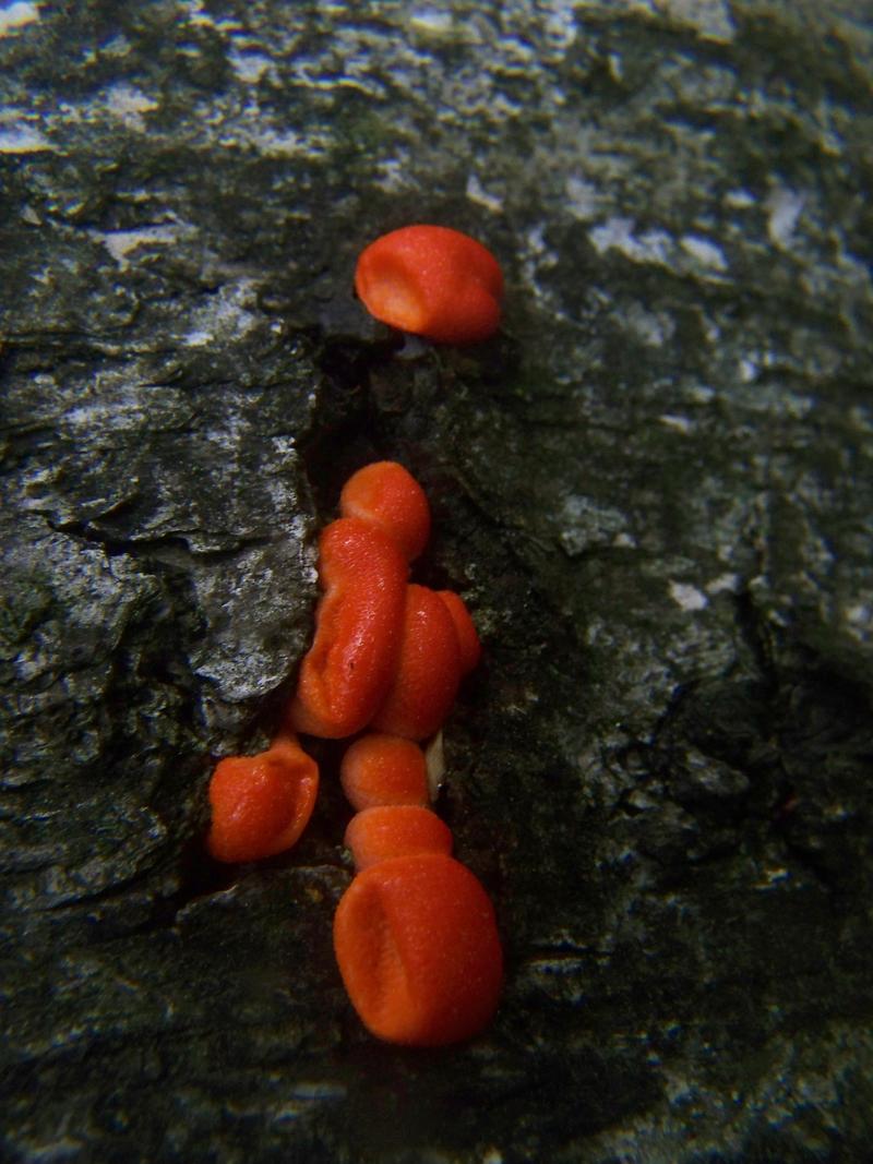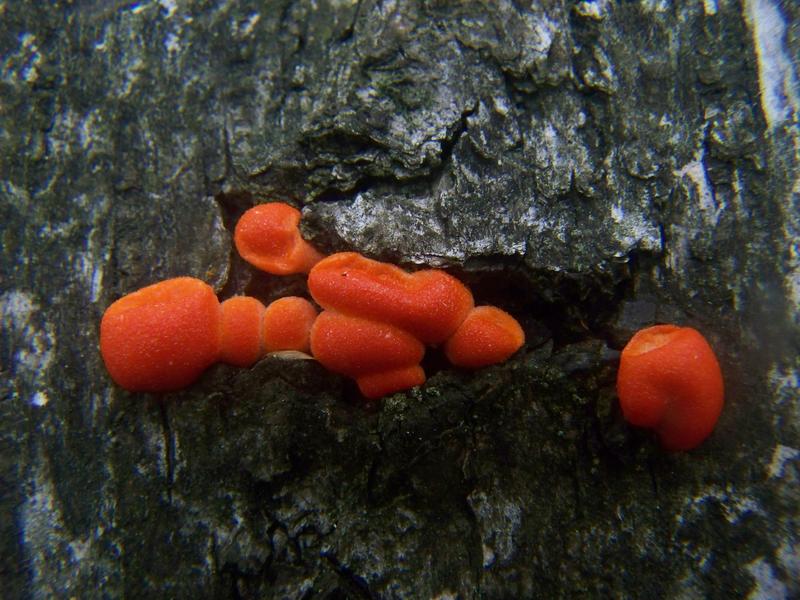 Ein für mich überraschender (und dafür passend zu den Blutmilchpilzen verdammt knalligfarbiger Fund), habe ich doch Zinnobertrameten scheinbar fälschlicherweise als nur im Herbst und Winter wachsend abgetan