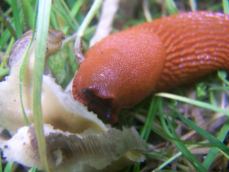 Nacktschnecke vs. vermutlich Voreilender Ackerling. Ich spoile nicht, wenn ich sage, dass die Nacktschnecke gewonnen hat, oder?