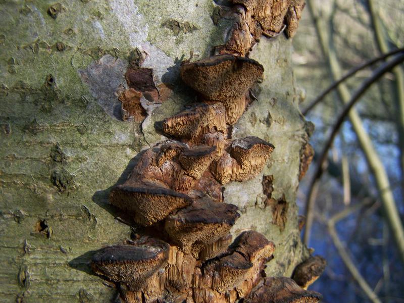 Fotos vom (nun gespaltenen) vermeintlichen Saftporling und dem Ast könnte ich nachreichen, sowie Fotos der eventuellen Blattpilze und des größeren Porlings von Fund 3.