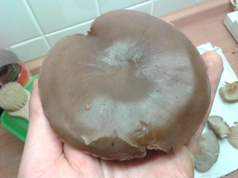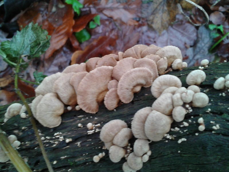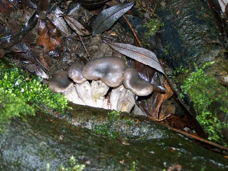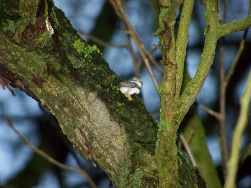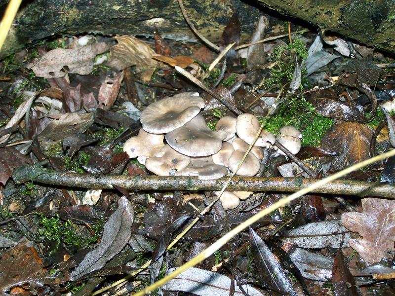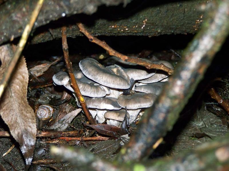 Wir waren ja eigentlich nach Austernseitlingen auf der Suche und, nachdem wir an einer großen Pappel erst einen Ansatz gefunden haben (Bild 1), wurden wir, als es schon dunkel wurde (weshalb die Fotos meiner Mutter helfen müssen), doch noch fündig. Zwar sind diese Seitlinge auf dem Boden gewachsen und wenig "seitlich", ihre typische Farbe und die Krempe lassen dennoch eine eindeutige Bestimmung zu. Zu klein, um sie für die Pfanne zu sammeln, waren sie zwar, aber immerhin kennen wir jetzt eine Stelle, die wir sicherlich in Kürze noch einmal aufsuchen werden.