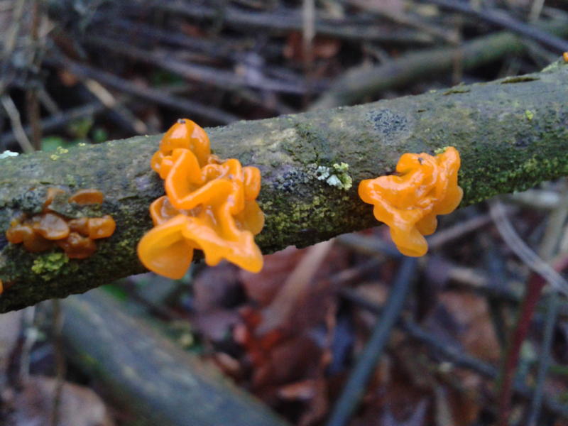 Und der Goldgelbe Zitterling (Tremella mesenterica), bzw. evtl. sein Zwillingsbruder (T. aurantia) ließ sich Blicken. Hier einmal in junger Form.