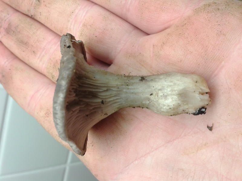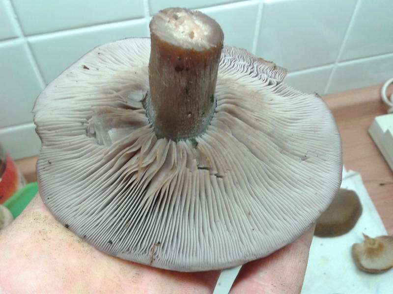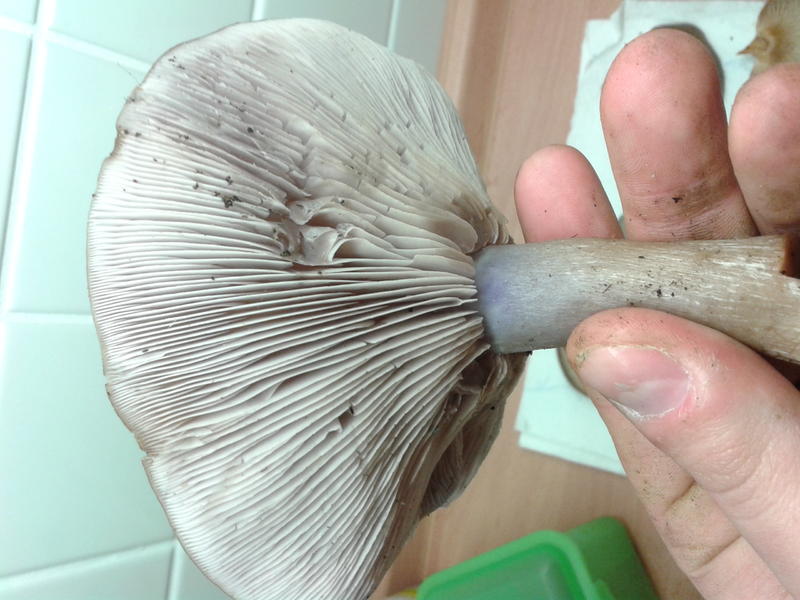 Last but not least (Jaaaa, ich komme ja gleich zum Ende!) haben wir auf dem Rückweg zum Auto einen weiteren Erstfund verzeichnen können: den Violetten Rötelritterling (Lepista Nuda). Ist dieser in der Form noch essbar? Riechen tut er nicht unangenehm und er sieht auch noch nicht schlecht aus, eventuell zeigt ein Anschnitt, ob er für eine kleine Kostprobe in der Pfanne noch gut ist.