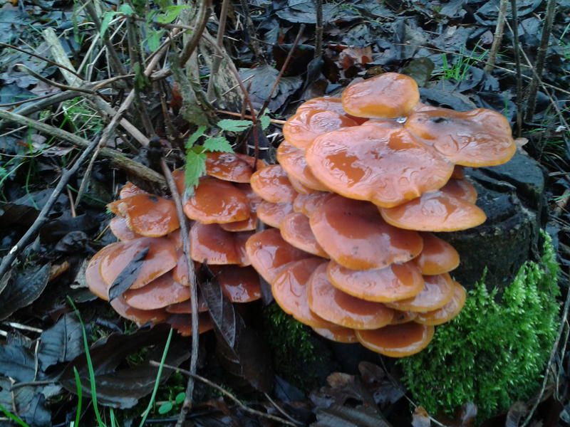 Und natürlich sofort Samtfüße (Flammulina velutipes). Seit meinem ersten Massenfund verfolgen sie mich quasi.