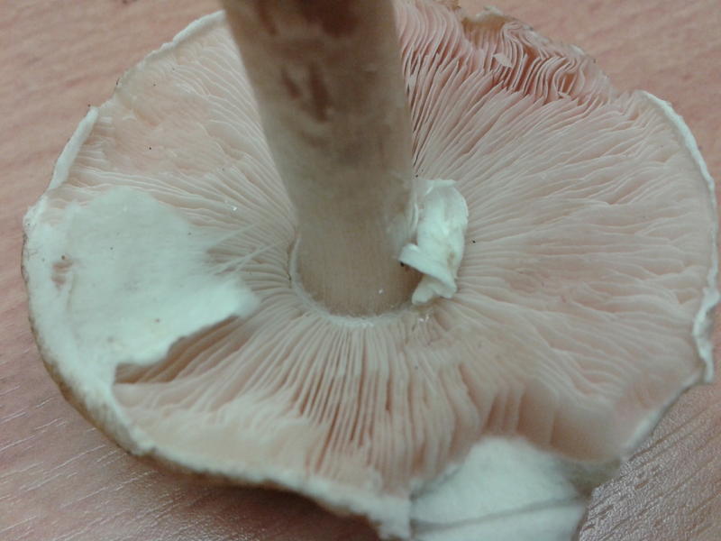 Ich vermute, gerade aufgrund der rosafarbenen Lamellen, einen Vertreter aus der Gattung Agaricus