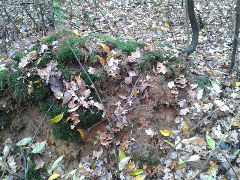 - Begleitbäume, Substrat: siehe Abbildung, Unterseite eines umgefallenen Wurzelgeflechts mit viel Erde. Stamm selbst war nicht mehr zu bestimmen.