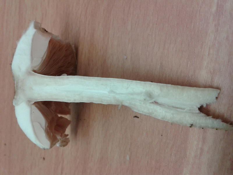 - Hut: weißlich mit brauner Schicht, Konsistenz wie bei Champignons aus dem Supermarkt