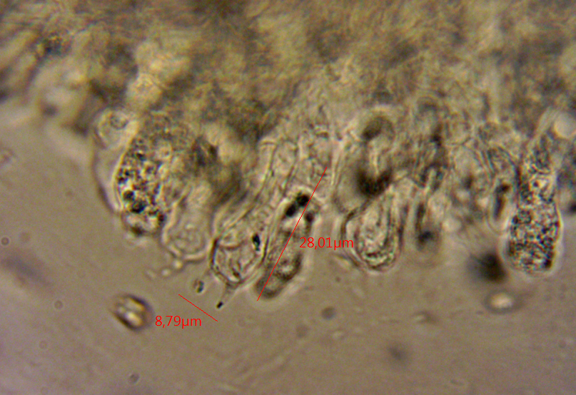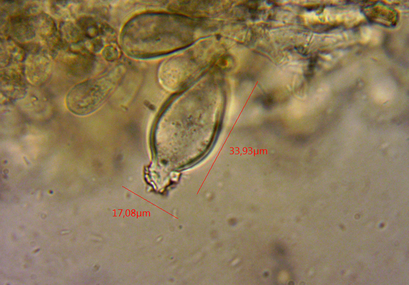 Durchschnitt unter 10 µm, wenn auch nur knapp. Dann mit Größe der Fruchtkörper und Sporenbreite auch Inocybe grammata.