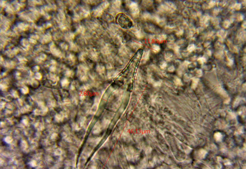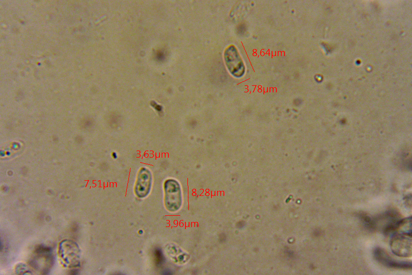 Durchschnitt unter 10 µm, wenn auch nur knapp. Dann mit Größe der Fruchtkörper und Sporenbreite auch Inocybe grammata.