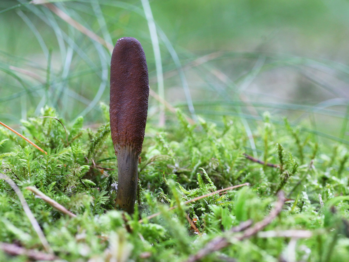 Die Zungenkernkeule (Elaphocordyceps ophioglossoides) konnten wir erst entdecken, als wir mit dem Kopf in Bodennähe waren. Nach den dazugehörigen Hirschtrüffeln buddelten wir umsonst.
