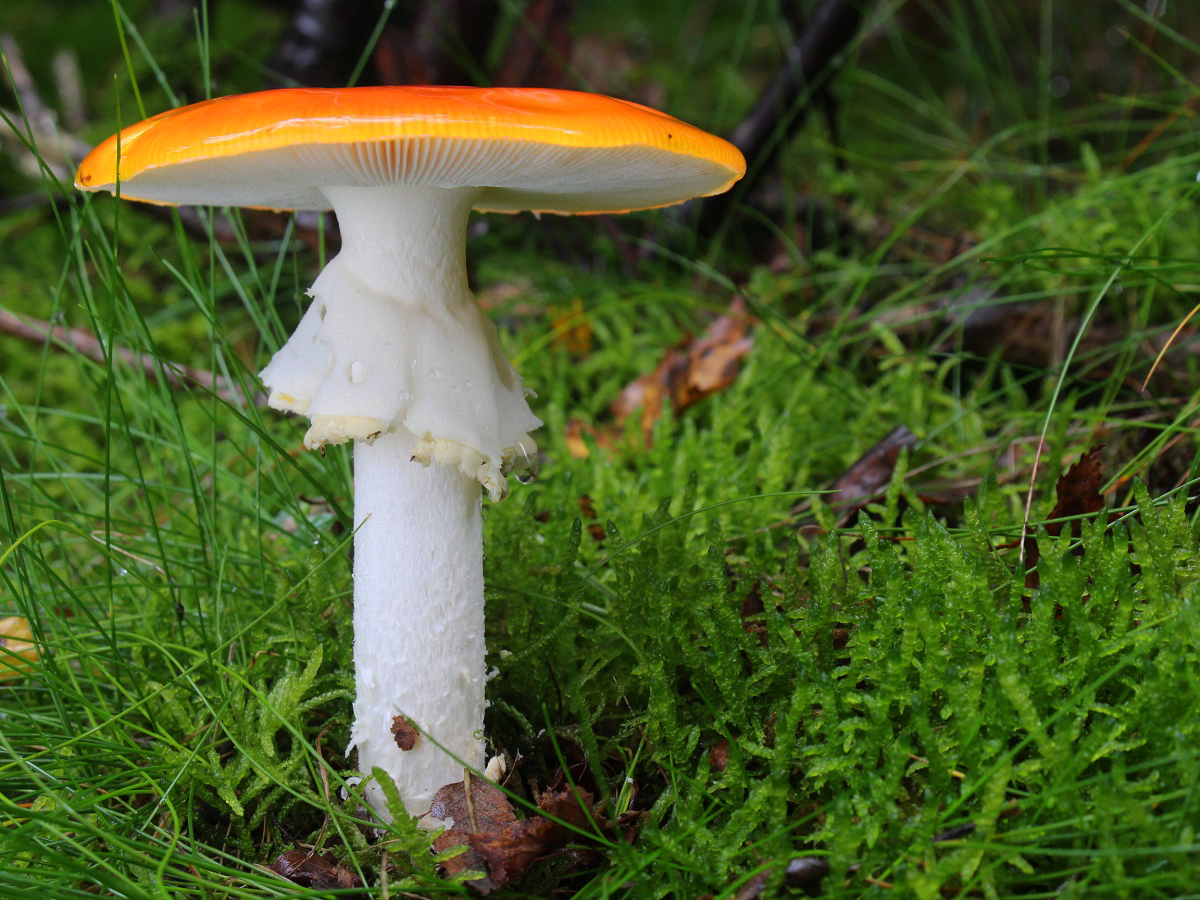 Und auch der Safran-Scheidenstreifling (Amanita crocea) hatte sich schick gemacht.