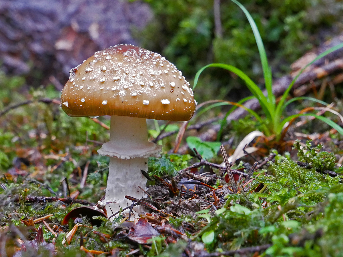 Und weil Pilzliesl gerade die weiße Erscheinung erwähnt. Auch in weiß findet man ihn hier besonders oft und die bräunlichen Velumreste sind auch dann immer eine große Hilfe bei der Bestimmung.