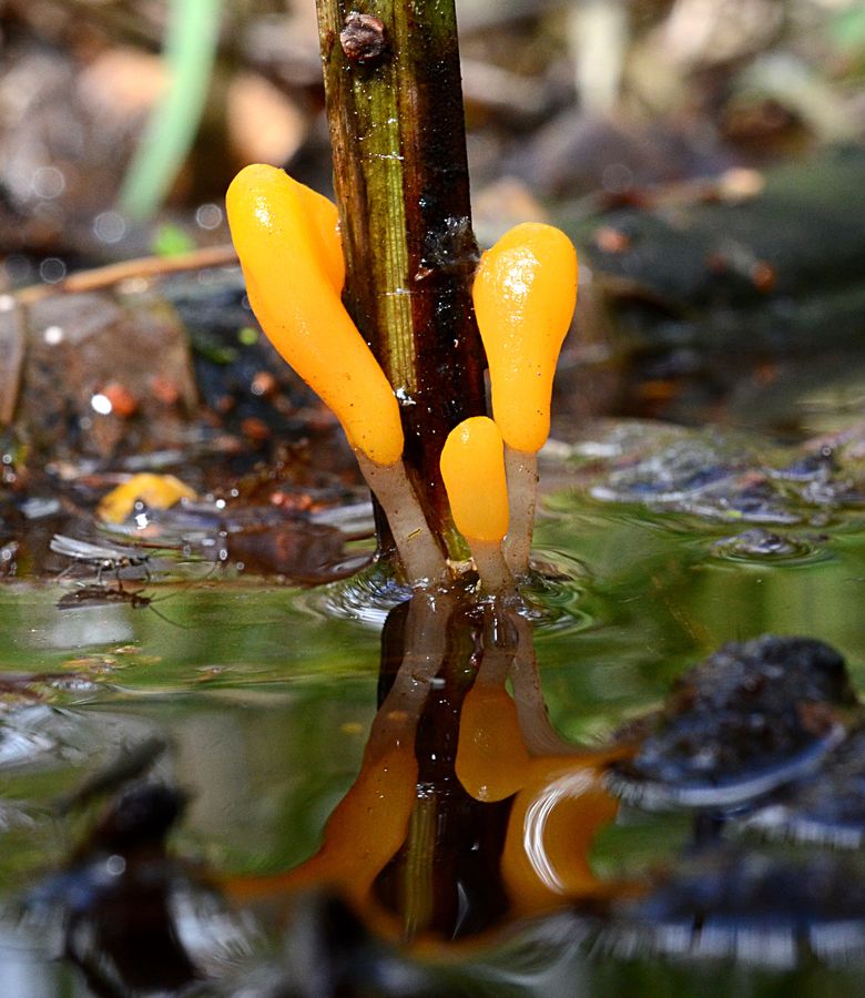 Physarum virescens ist das aber leider, wie Ulla schon gesagt hat, nicht. Die Art ist noch würstchenförmiger (nicht nur z. T. leicht verlängert) und im reiferen Zustand gelbgrün. Leider sind meine Aufnahmen der Art nur mittelmäßig. Bessere findet man im Internet, darf sich aber nicht durch die vielen Bilder des unreifen Stadiums irritieren lassen. Ich selbst habe ich die Art bisher auch nur unreif gefunden, sie ist dann jedes Mal in der Dose auf dem Weg nach Hause nachgereift. Das scheint arttypisch zu sein. Worum es sich tatsächlich handelt, kann ich dir aber leider auch nicht sagen.