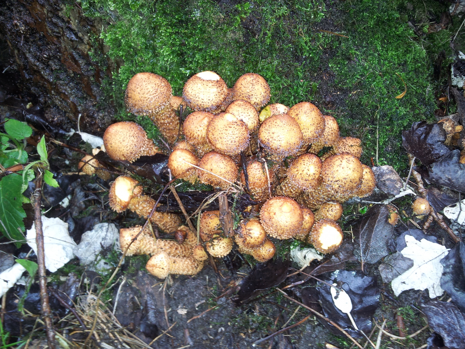 hier eine mir sehr wichtige Frage an die Expert:innen: Der auf dem folgenden Bild zu sehende Schimmelpilz sitzt auf einem sehr morschen Dachbalken eines 130 Jahre alten Bahnhofs. Ich wüsste gerne was das für einer ist und ob der irgendwie gesundheitsgefährdende Sporen bildet.