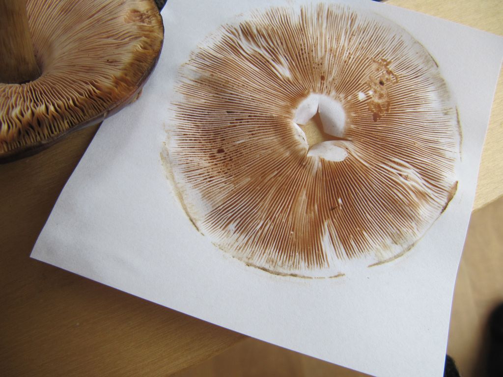 Nummer 2: eigentlich war ich mir ziemlich sicher, Dachpilz - also mit dem Töchterchen eingepackt, denn Mädels freuen sich über rosa Sporenabdrücke