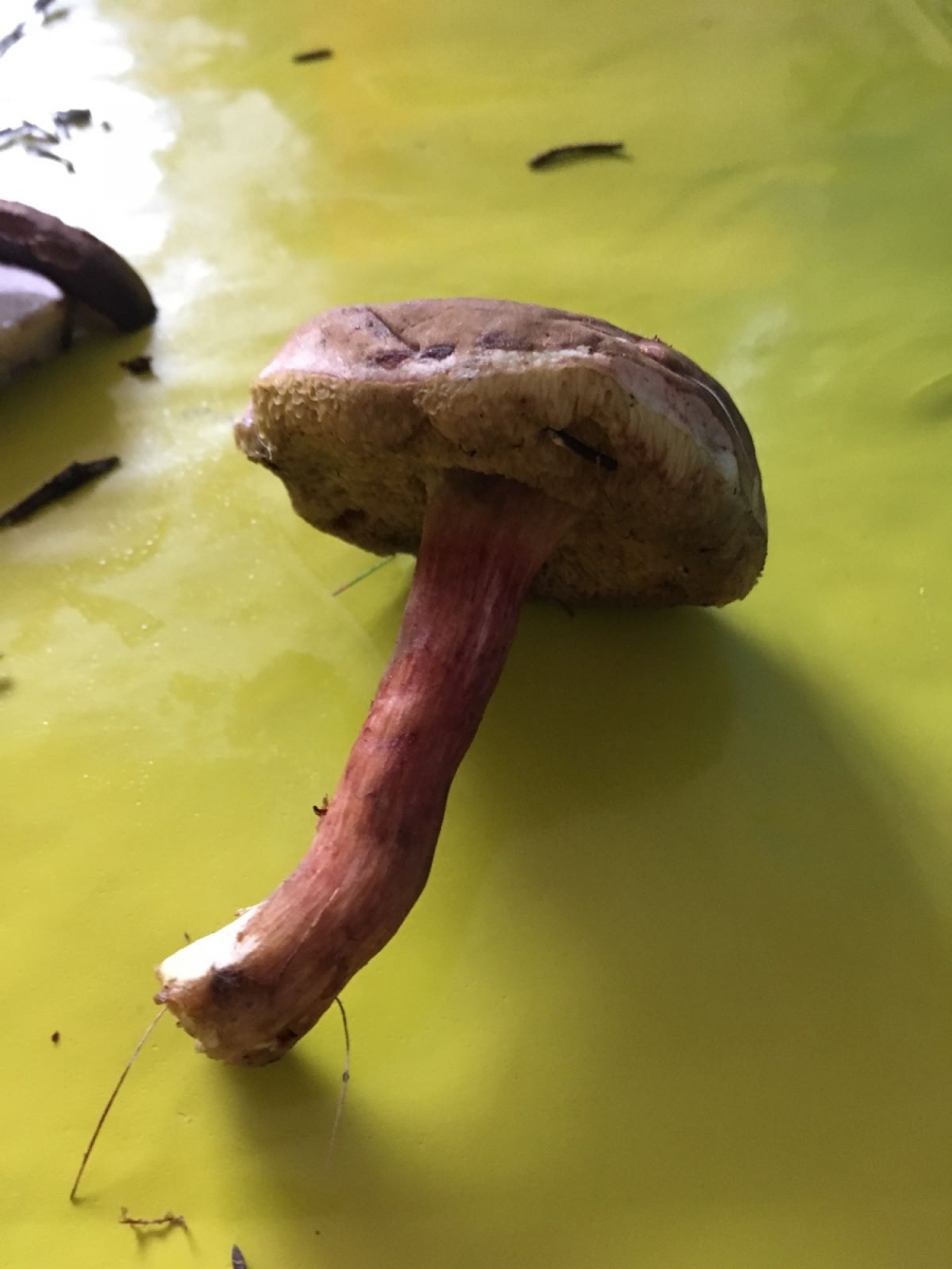 Vor allem der rote Stiel hat uns irritiert.Boden: bemooster Nadelwaldboden