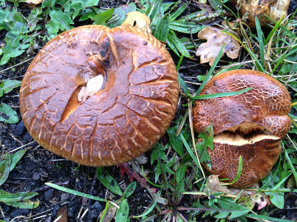 Habe gerade in der Nähe meine Bushaltestelle einige Pilze mit leistenartigen Lamellen gesehen. Die Lamellen sind teilweise mit einander verwachsen. Der Pilz war sehr fest, der Hut glatt und mit tiefen Furchen und Rissen versehen. Was mag das wohl sein? In meiner Bestimmungs-App habe ich sie nicht finden können, Pilzlexikon liegt zu Hause.
