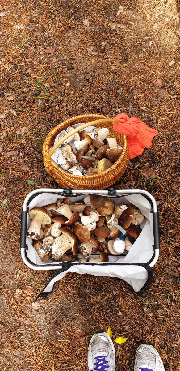 Hab mich erst geärgert, komm am Wald an, stehen schon drei Autos da. Im Wald haben die sich dann benommen wie die HottenTotten, rumgebrüllt, Pilze abgeschnitten und sie dann doch liegen lassen etc. Und die sind systematisch den einen Hügel abgelaufen, da war also nichts mehr zu holen.