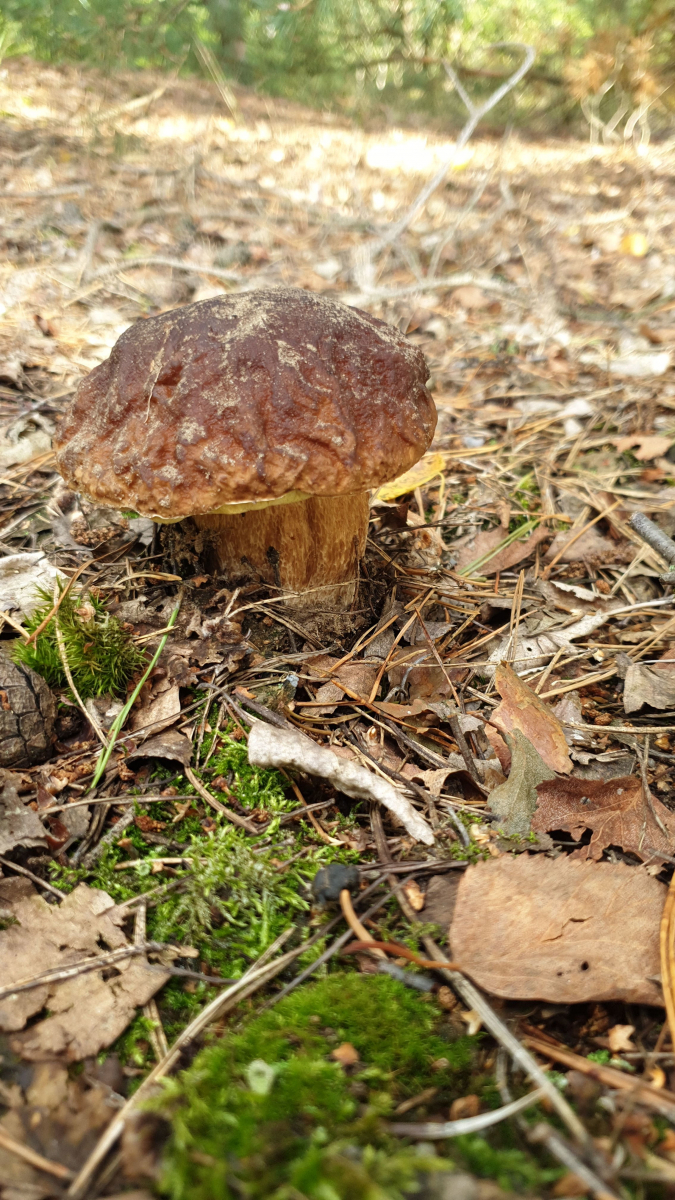 Bin dann tiefer in den Wald rein, hab erst absolut gar nichts gefunden und dann kam ich aus dem Bücken nicht mehr raus. Maronen und Steinpilze, alle knackig und kaum angefressen. Was hab ich mich gefreut. Dann kam der Förster, hat angehalten und mit mir wegen meinem Hund gesprochen. Dachte schon, jetzt gibt ´s einen auf den Deckel weil in Brandenburg ja Leinenzwang im Wald herrscht. Aber der war ganz nett, haben meinen Hund ein paar Mal losgeschickt und ich hab ihn wieder abgerufen und damit war das dann erledigt. Ich darf ihn dort weiterhin ohne Leine laufen lassen. Das freut mich total weil er überall dabei ist und es ärgerlich wäre, wenn ich ihn im Wald dann noch an die Leine nehmen müsste.