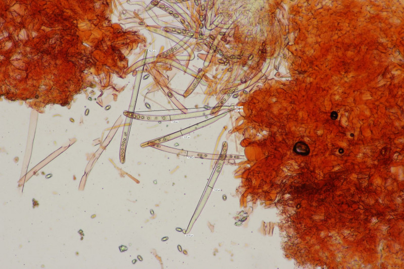 - Sporen: Extrem schmal und deutlich gekrümmt (allantoid).