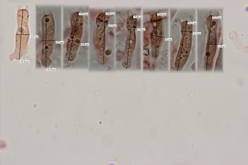 Mikroskopische Befunde: Beim Mikroskopieren zeigten sich jedoch Merkmale, die C. gilvescens klar ausschließen: