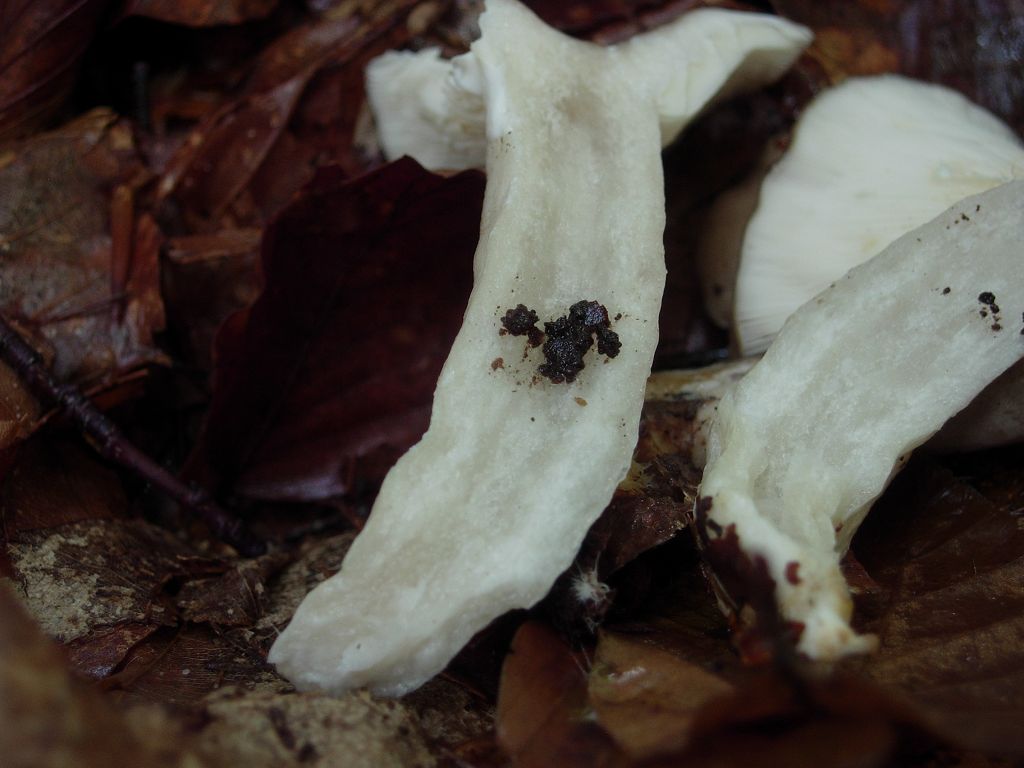 Der erste Pilz wäre dann ein Milchling ich denke das ist der Graugrüne Milchling (Lactarius blennius), wahrscheinlich die var. viridis, Milch war in überfluss und sehr scharf, blieb lange unverhändert, auf die Lamellen trochnete später Grün, der Hut schleimig, klebrig (higitt).