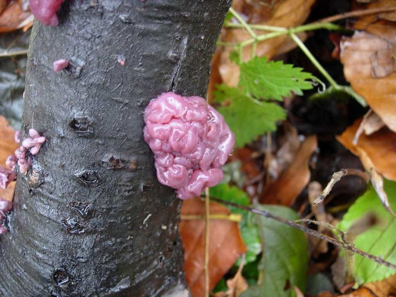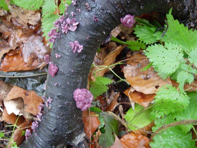 7) Fleischfarbener Gallertbecher (Ascocoryne sarcoides) oder viell. seine Nebenfrucht Form