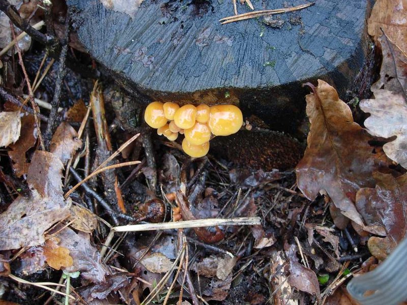 den Orangeroter Träuschling (Stropharia aurantiaca) ganz allein, nahm ich dann mit fürs Kranz.