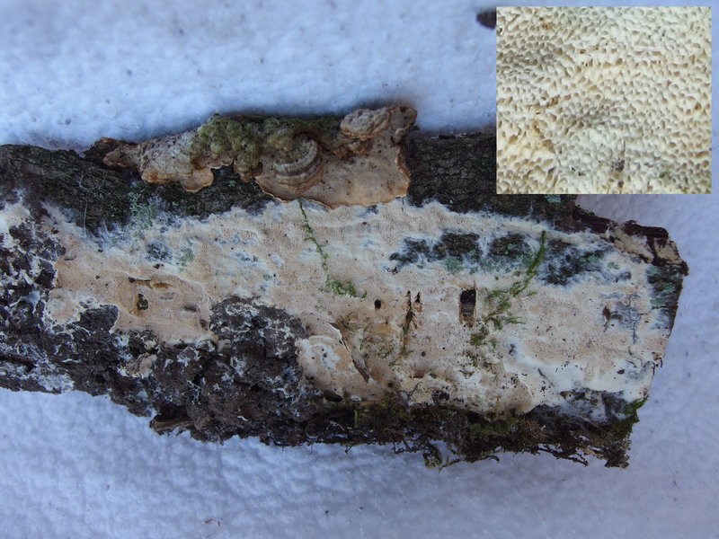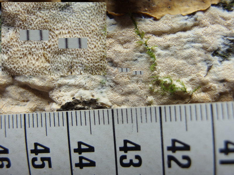 Makroskopisch gekennzeichnet sich die Art durch kleinere Poren, bei diesen Fund erinnerte mich die Farbe an Steccherinum ochraceum.