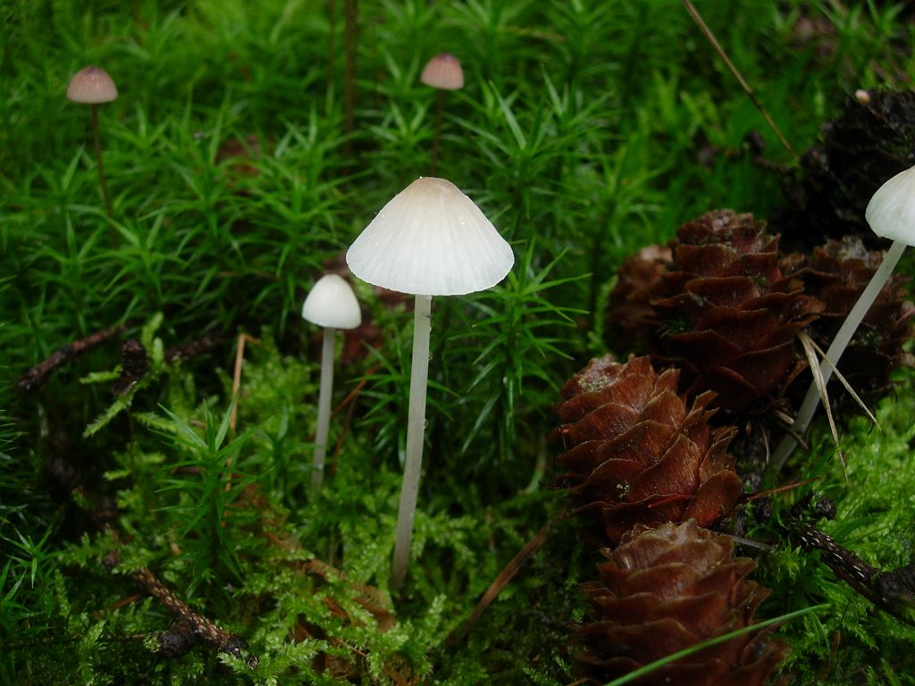 2 Weißmilchende Helmling (Mycena galopus) die weiße variante
