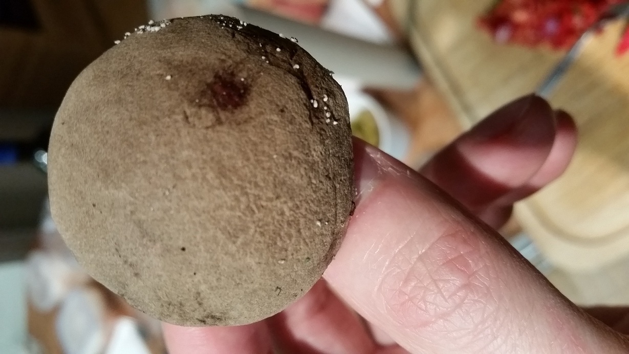 Nächste mal mach ich wieder schöne Nahaufnahmen mit der Diggicam, irgendwie sehen die Pilze auf den Handy Bildern hier nicht so schön aus.Bei dem zweiten denke ich mal wieder an die Rotfußfamilie aber der Pilz hat keinen roten Stiel. Wird der erst rot wenn die Pilze älter sind? Der hier ist noch sehr jung und knackig und hat ein ganz mildes Aroma. Im Schnitt wird er relativ schnell leicht blau im Stielbereich. Das Weiße oben dran ist von ein paar Flaschenbovisten die mit im Korb waren