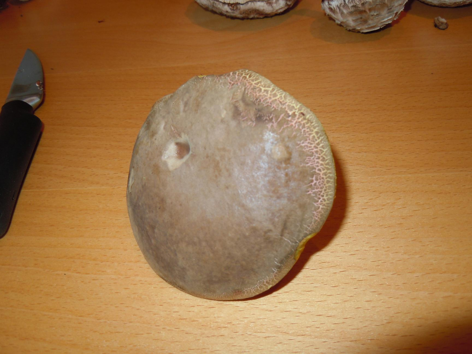 Ganz am Rand haben die Hellhütigeren auch leicht rote stellen. Der Pilz fängt nach einer Weile auch an zu blauen, das fleisch ist eher weißlich.