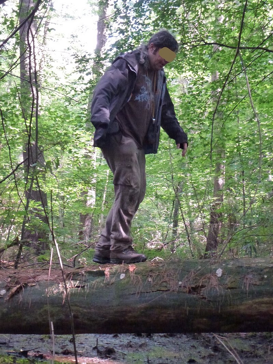 Stefan bei der traditionellen Bachüberquerung: er hat sich mittlerweile auf Miniaturholz kapriziert