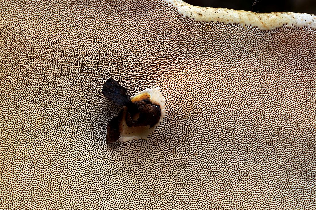 Nein nein! Hierbei handelt es sich nicht um einen Apportiporus, sondern um Oligoporus guttulatus., den Getropften Saftporling. Im durchstreiften Waldstück ist er nicht selten, wächst über die Monate an verschiedenen Nadelholzstümpfen und leuchtet hell durch den Wald. Ich finde ihn an Fichte und Douglasie im Spessart und Steigerwald auf frischen Böden, in schattigen Waldstücken, jeweils in Höhen ab ca. 350m.