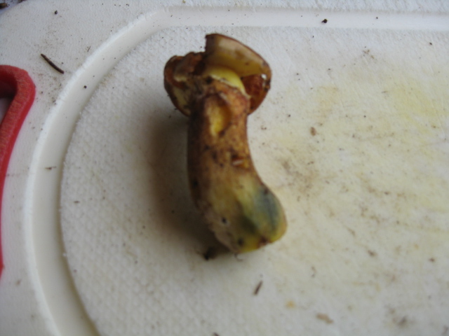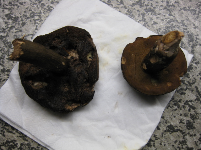 Nach einiger zeit hat der Pilz die Farbe verloren und ist dunkler geworden.