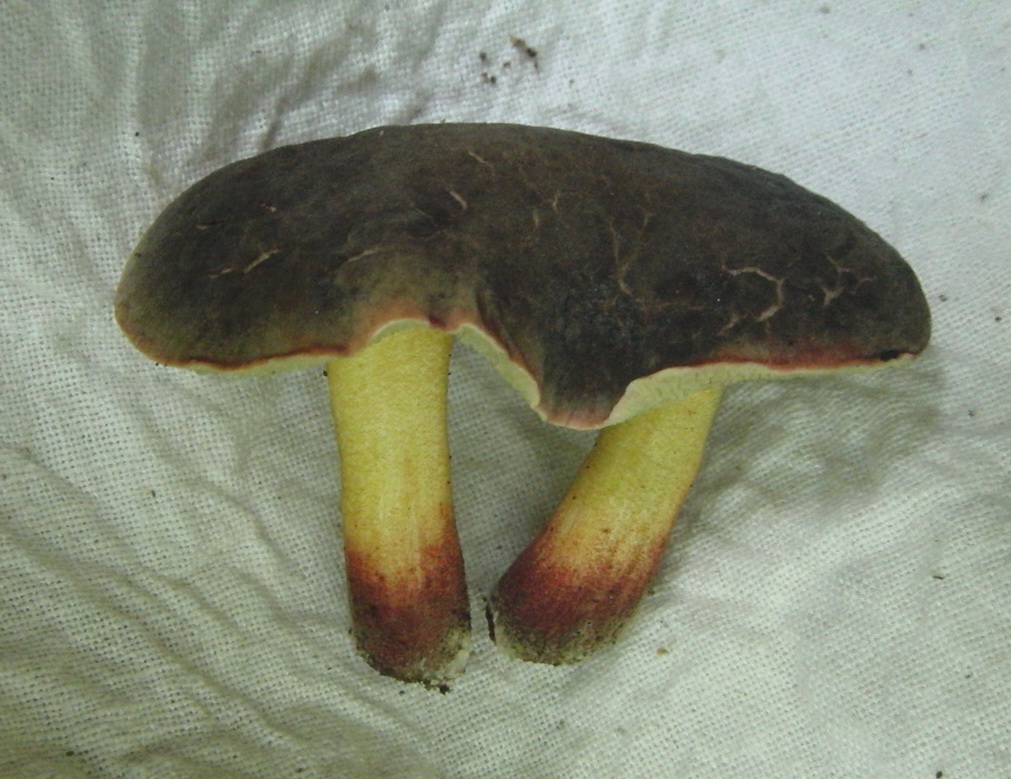 Hutdurchmesser je nach Exemplar 1,5 - 3 cm, Stiellänge 2 - 5 cm. Hut trocken. Verfärbung des Fruchtkörpers: siehe Foto. Geruch: undefinierbar (für meine Nase). Fundort: Mischwald (Pfälzerwald); in der Nähe hatte es einige Steinpilze.