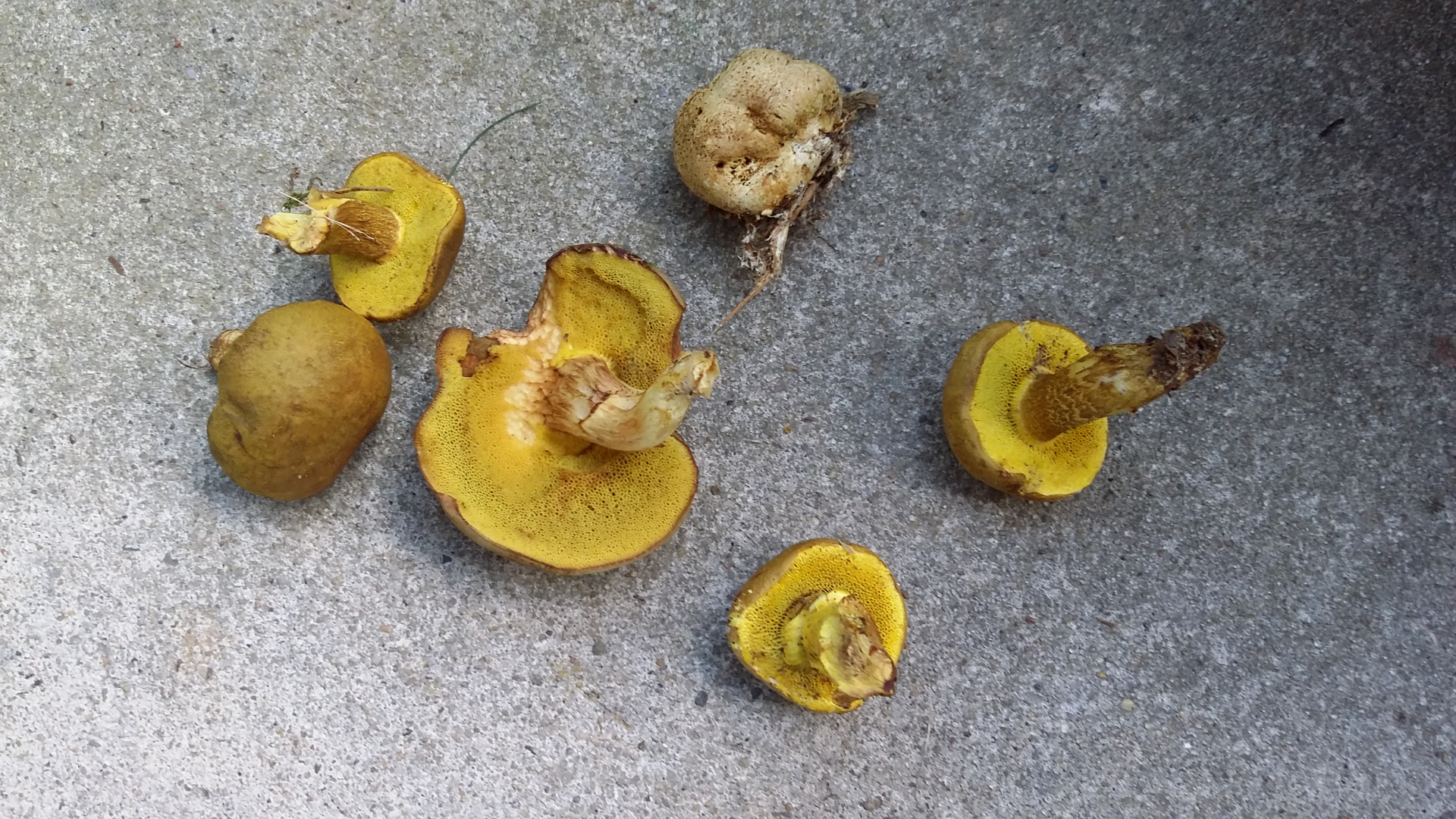 haben heute weiter "unseren" Wald erkundigt, und dabei eine schöne, sonnige und sandige Stelle entdeckt. Viele Kiefern wachsen hier. Neben einigen Steinpilzen, haben wir diese beide Sorten gefunden. Unserer Meinung nach Sand- und Kuhröhrlinge. Was meint ihr?