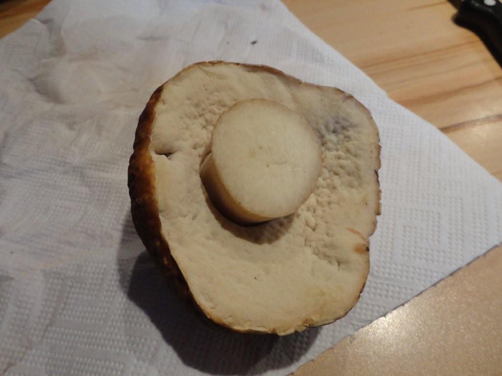 Das Fleisch ist weiß und fest, bei den älteren schon etwas weich, luftig.Der Standort ist an einem Südhang im Schatten von Büschen oder Bäumen. Einmal im Gras, sandiger magerer Rasen, in der Nachbarschaft stehen Fichten.