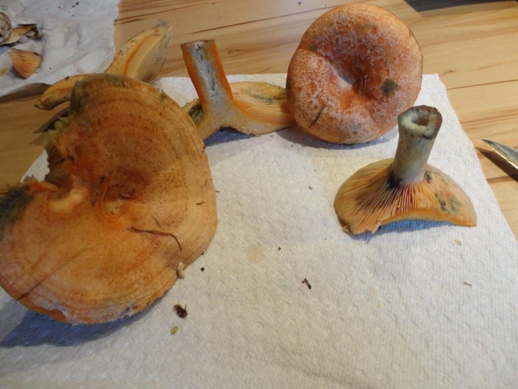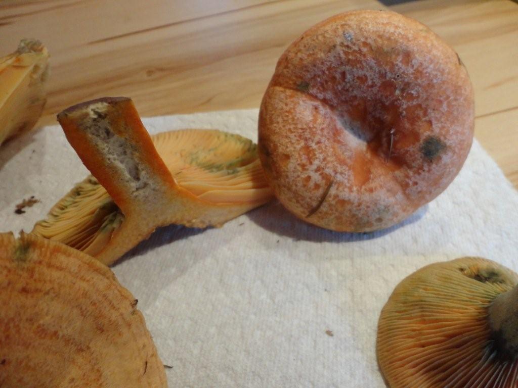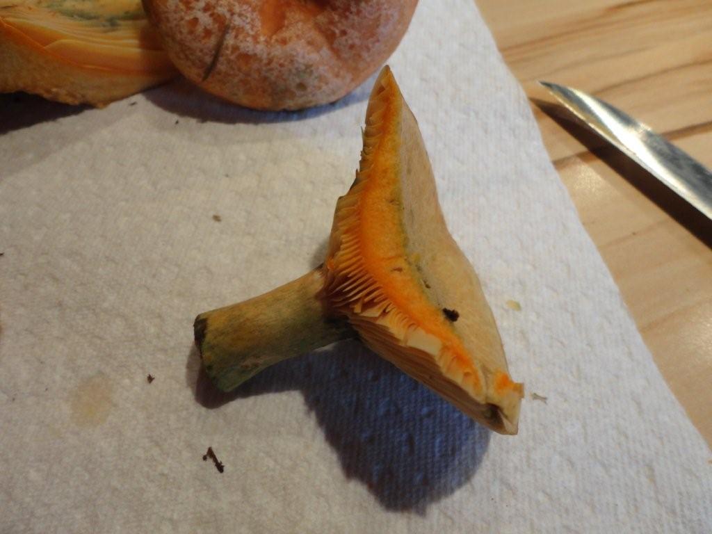 Die Schnittflächen bilden orange Milch, leider nicht so intensiv, da ich die Pilze gestern schon gesammelt hab