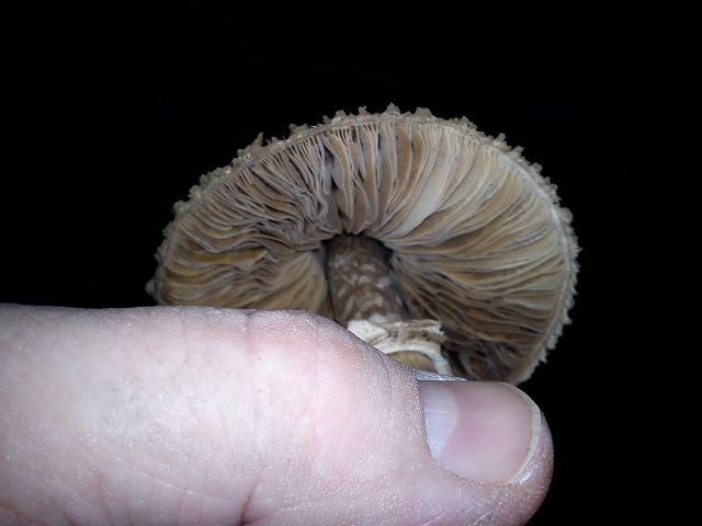 Die Lamellen sind sonst weiß, auf dem Bild der Pilz war